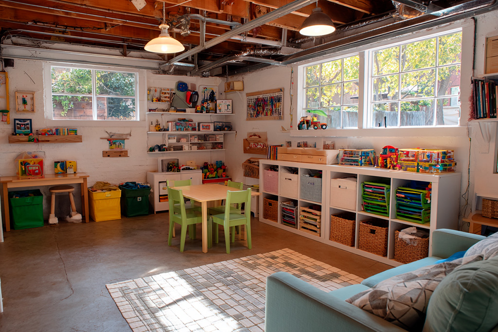 Do you need extra room for the kids to play? An emptied-out garage could be the perfect spot. Start by ensuring that it is fully clear of any hazards, including stored chemicals, rickety shelving, and oil on the floor. Once that’s done, install soft flooring like foam mats over the entire area for comfort and safety, and add storage bins and bean bag chairs around the room for easy organization and soft spots to rest. Throw in a Ping-Pong or pool table, and it will work as a playroom for children and adults alike. And similar to the office, it may be worth closing off the garage and insulating it, making it feel like a true extension of your home’s living space.