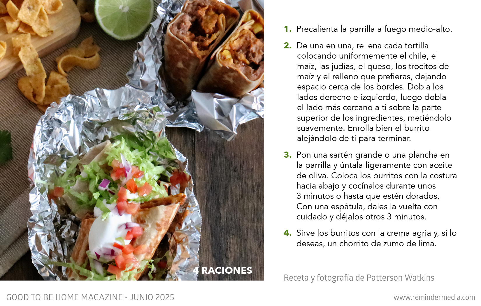 Sirve los burritos con la crema agria y, si lo deseas, un chorrito de zumo de lima.