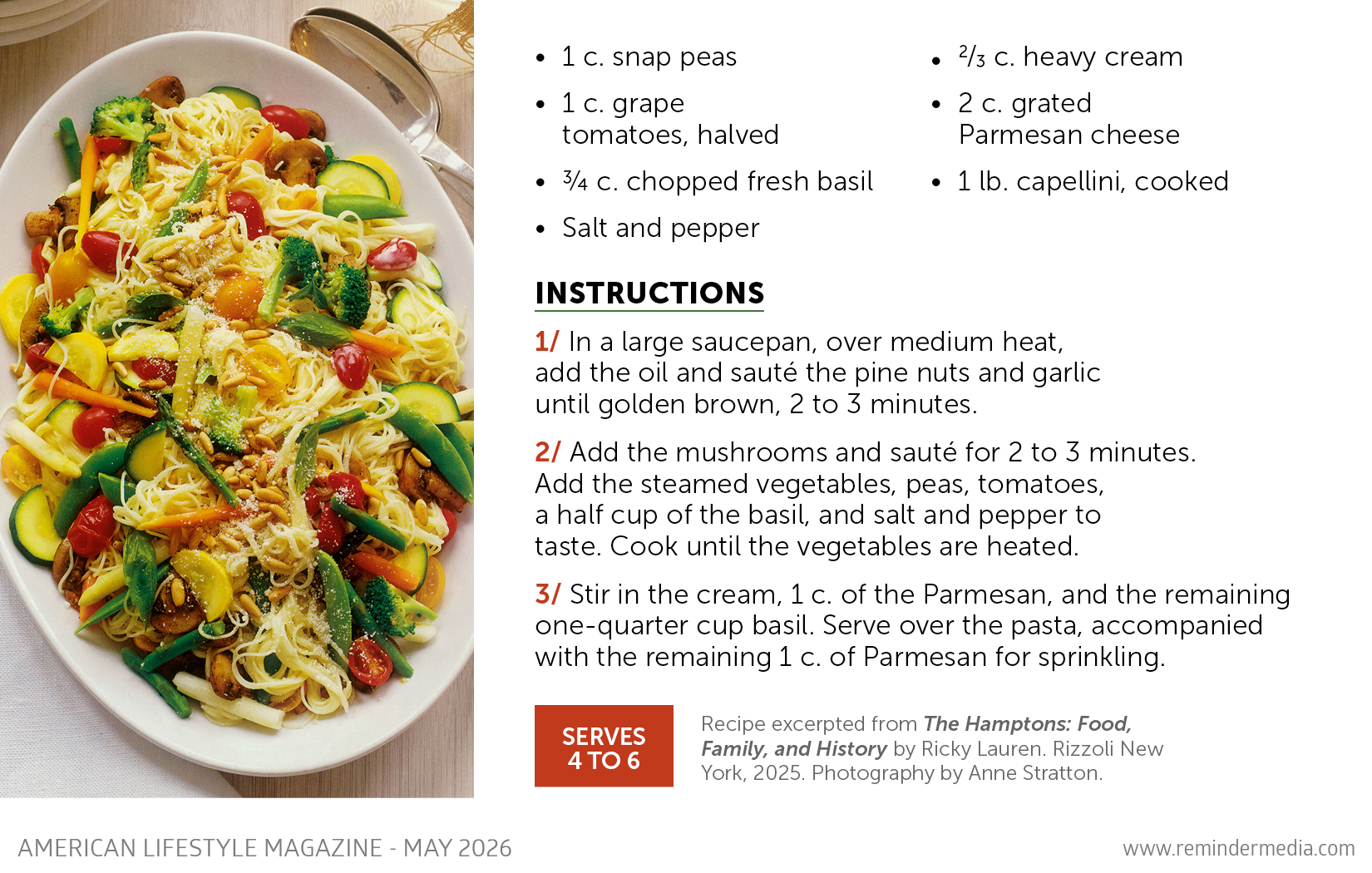Imagine spending your summer days by the coast, waking up to the scent of vanilla and cinnamon drifting through the kitchen and then winding down with pasta tossed in the season’s freshest farmstand finds. It’s the kind of effortless rhythm that inspired Ricky Lauren’s The Hamptons: Food, Family, and History cookbook, which helps bring the beauty and flavor of coastal living right to your table.