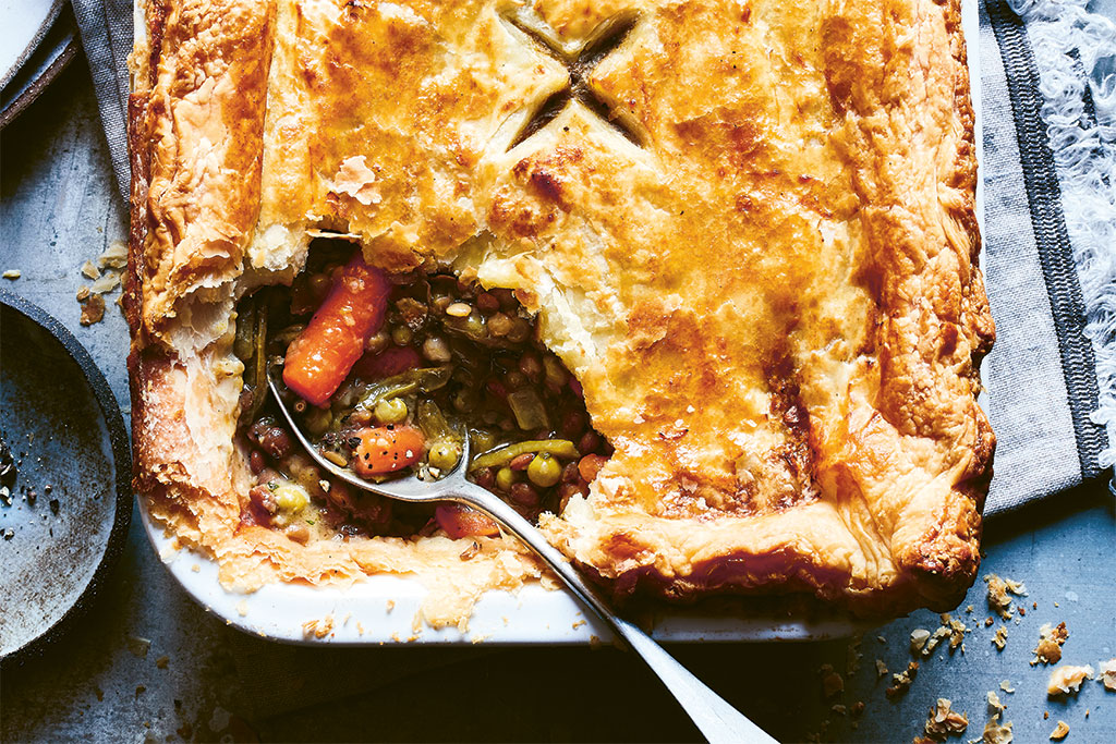 This pie is packed with a medley of vegetables and features a tasty filling—making it a perfect cold-weather dish.