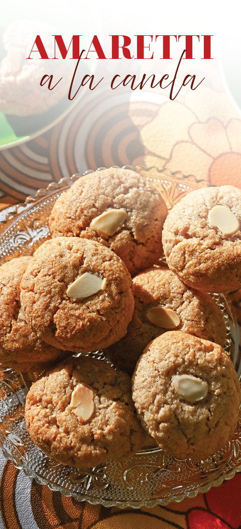 Me he tomado la libertad de añadir canela a la receta de mi madre. Da a estos amaretti suaves y masticables una calidez adicional que me encanta. Cuando me sobran claras de huevo de hacer natillas, a menudo hago una tanda doble y meto la mayoría en una bolsa hermética en el congelador. Saco una o dos del congelador y, tras unos 15 minutos a temperatura ambiente, están listas para mojarlas en el café de media mañana.
