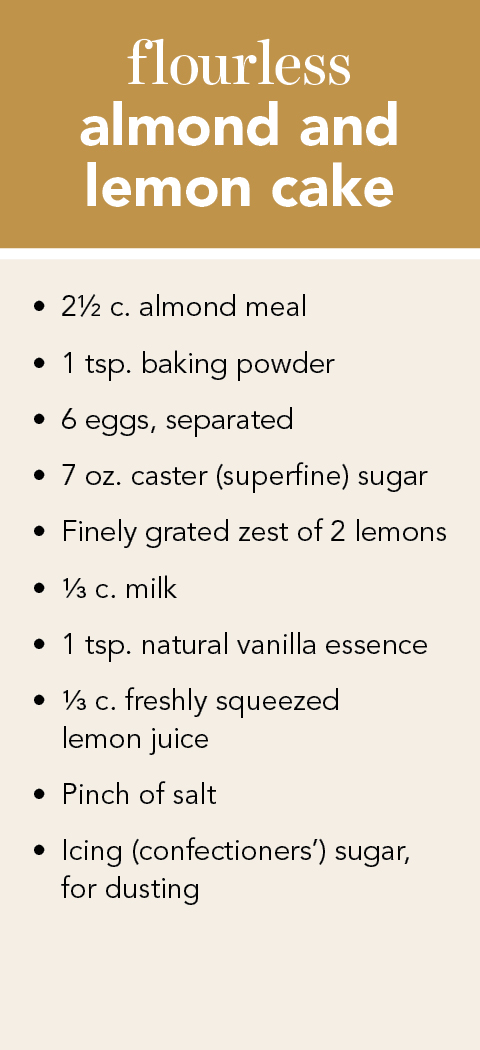 This light, gluten-free cake can be loosely attributed to Zia Liliana, aunt of Signora Enrica from Otranto, in southern Puglia. I add extra lemon zest to my version, to give this flourless cake a real tangy hit.